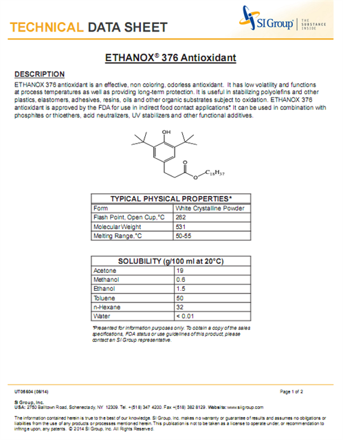 聚合物抗氧化(huà)劑ETHANOX® 376 Antioxidant