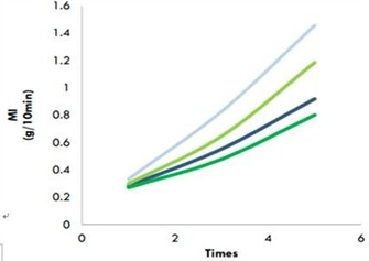新(xīn)型添加劑AL-NOX 3025是用于PP之高效能(néng)抗氧化(huà)劑配方,針對COPO PP(MI:0.2-0.5)在300℃之1st、3rd、5th的測試結果,可知: